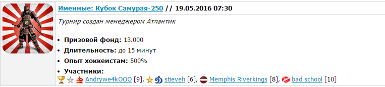 А турнир на 8 команд я думаю тоже будет собираться до отказа так как именные не стыкуются с вип-турнирами и звёздными Лично я за последних 3 месяца не разу не попал ни в один турнир |