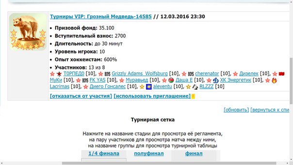 Предлагаю расширить до 16, что бы все желающие могли принять участие в вип-турнире. Возможно не всегда будет 16 участников но зато все будут попадать и играть. Эскизы прикрепленных изображений |