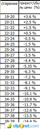 А писать не умеем ? И что эта таблица показывает ? Что чем моложе тем дороже А у меня более молодой стоит меньше Вот объясните мне по-русски как из этой таблицы мне может стать понятно , почему 22 летний игрок дороже 20 ти летнего ? 18 летний игрок начинает стареть и до 23 лет, старея, растет в цене на определенный процент к своей стоимости (он указан в таблице, например при старении с 19 до 20 лет он становится дороже на 3,6% к стоимости и т.д.) После 23 лет игрок, старея дешевеет, опять же на соответствующий возрасту процент. Если вы и дальше будете общаться в такой манере, вообще не получите никакой информации, по крайне мере от меня, вам тут кто-то нанялся все расписывать и разжевывать? -------------------- Руководить людьми и пасти баранов - абсолютно разные вещи).